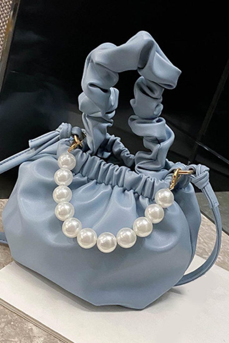 Noś tę uroczą torebkę jako torebkę na ramię lub torebkę. Tak czy inaczej, Twój styl z tą torebką przeniesie Twoją stylizację na zupełnie nowy poziom. Posiada; marszczone paski, dwukolorowy, sztuczne perły.
