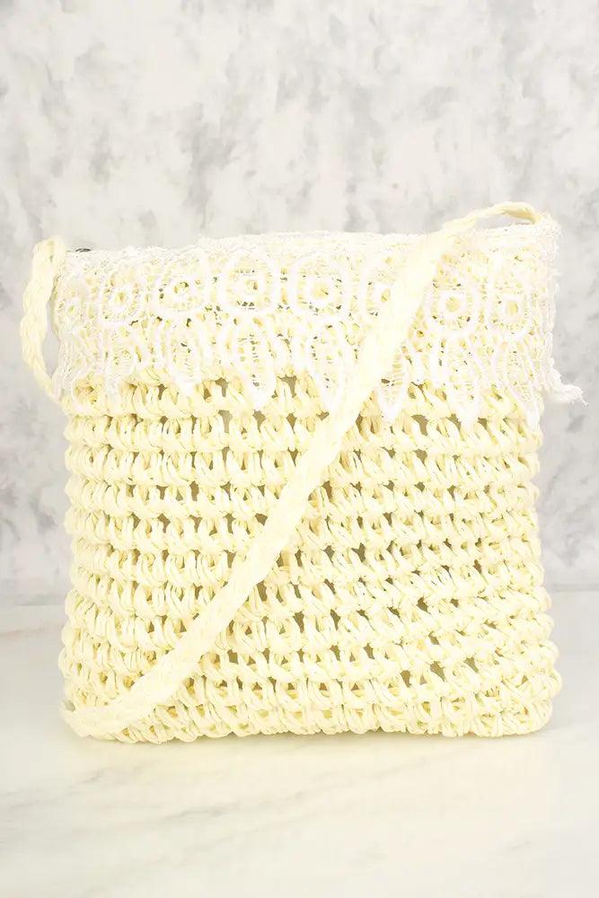 Torebka na ramię z haftem z szydełka w kolorze słomkowym