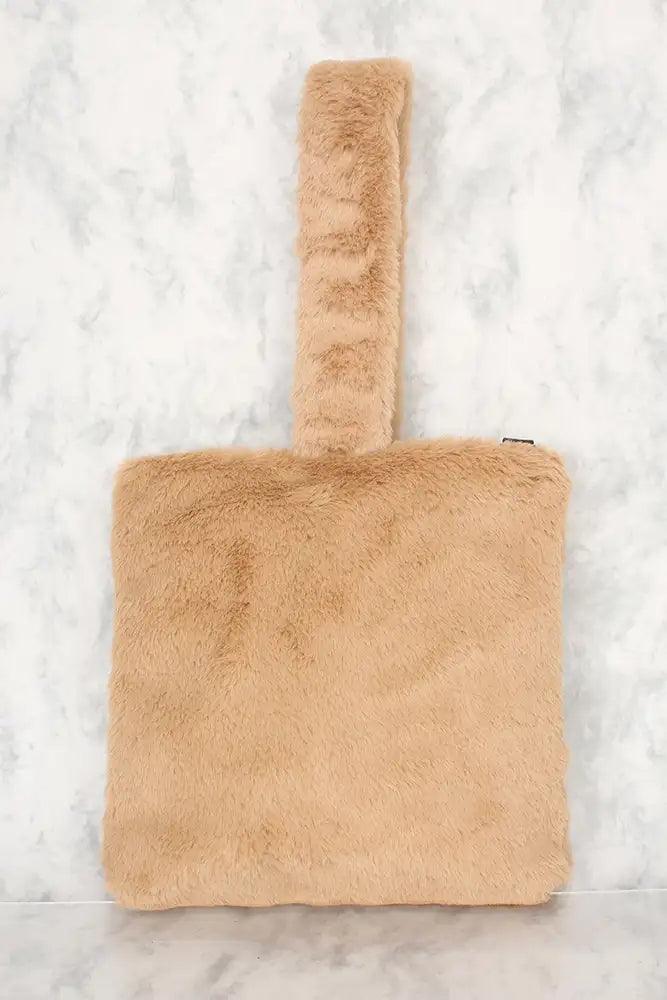 Seksowna Beżowa Torebka na Ramię z Sztucznego Futra