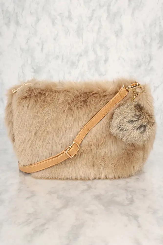 Seksowna Beżowa Torebka Mini z Sztucznego Futra
