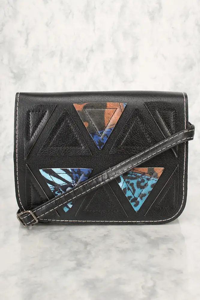 Seksowna czarna niebieska torebka na ramię z geometrycznym wzorem ze sztucznej skóry