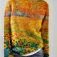 Damski Sweter – Luźny Krój – Wełna – Haftowany Wzór Kwiatowy – Długi Rękaw