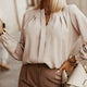 Ta elegancka bluzka emanuje ponadczasową klasą dzięki wytwornemu krojowi i miękkiej, płynnej tkaninie. Subtelne fałdy i delikatne detale nadają kobiecy akcent, idealny zarówno do pracy, jak i na wieczorne wyjście.